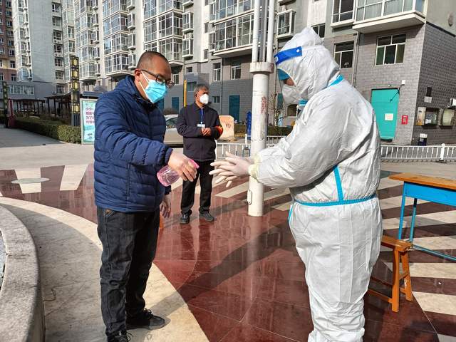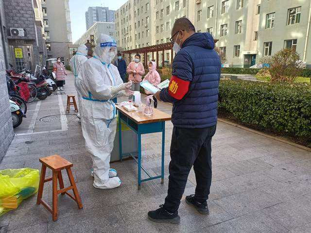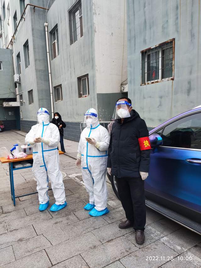 他(她)们脱去了日常便装,穿上了防护服,戴起了写有“执勤”二字的红臂章,挂上了工作牌,有的协助工作人员登记录入信息,医护专业人员主动请缨担起了核酸采样重任,有的维持核酸采集点秩序,提醒居民佩戴口罩,准备好身份证,以及前后间隔1米距离排队;有的登高爬低给各楼道消毒,有的拿喇叭宣传防疫知识,呼唤居民下楼做核酸,有的巡查小区,劝离人员聚集,劝离不文明现象;有的宣传号召居民不扎堆、不聚集,做好自我防护。每天从早晨5点多一直要忙到晚上11——12点,他(她)们用实际行动在抗疫战场上彰显使命和担当。